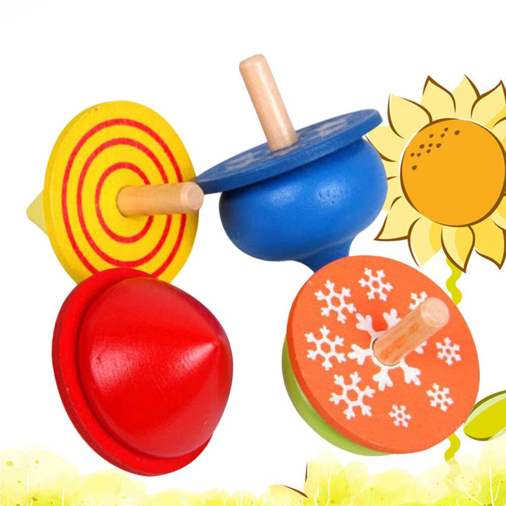 4 Stuks Kids Peuters Educatief Speelgoed Hout Handgemaakte Tol Kleur Gyro Voor Jongens Meisjes