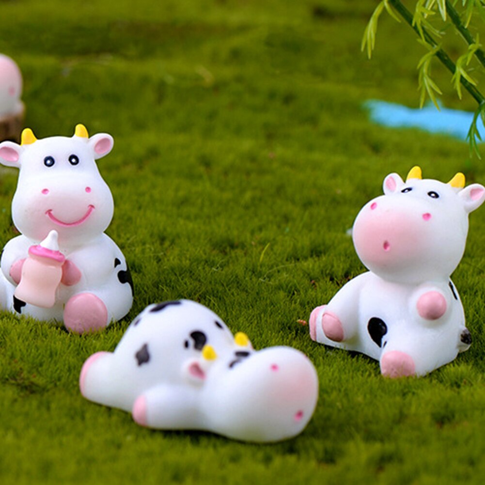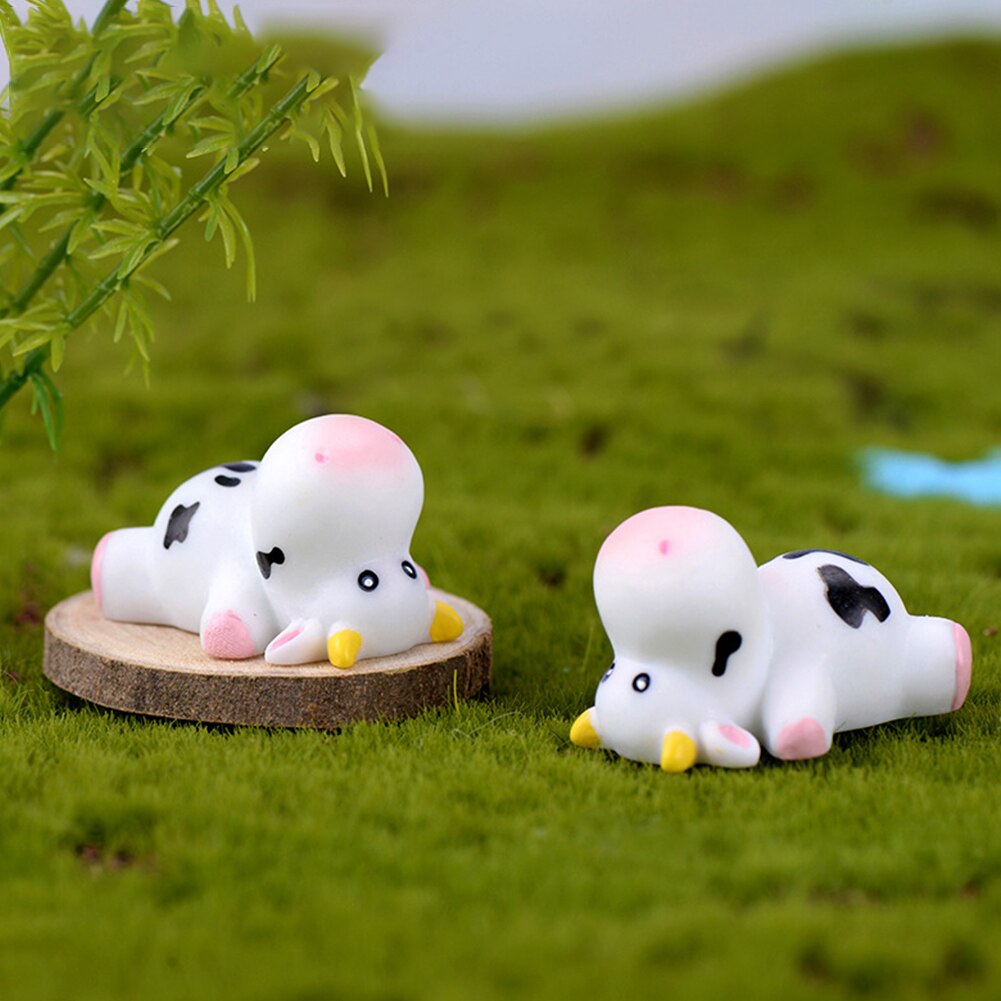 6 Stuks Tuinbeelden Terrarium Moss Landschap Diy Mini Cartoons Dieren Leuke Koe Ambachten Hars Home Ornament Miniatuur Beeldjes