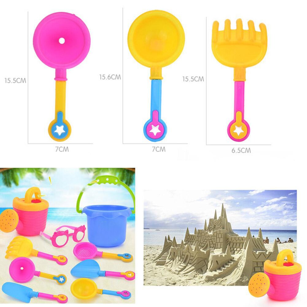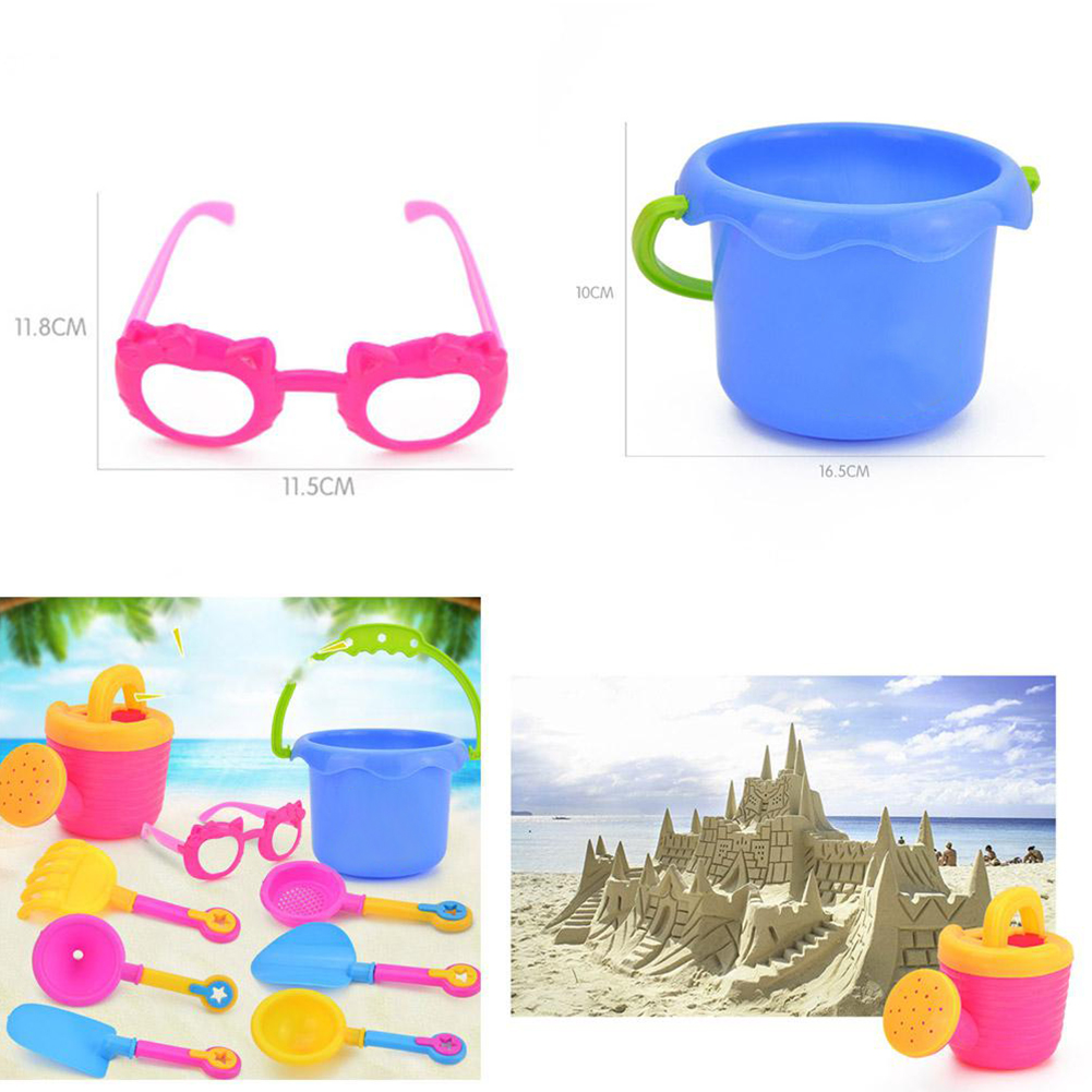 9pcs/Set Kettle Colorful Water Simulation Seaside Shovel Sand Play Plastic Glasses Bucket Beach Funnel Toy Set Random Color