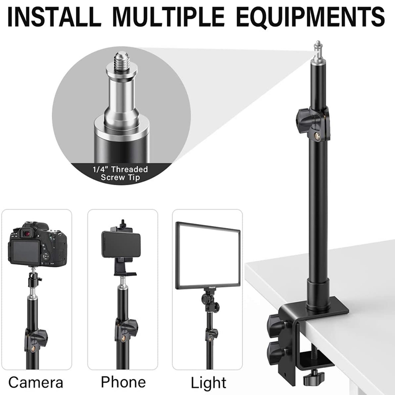 Desktop C-Clamp Mounting Bracket, Adjustable Lamp Holder, Standard 1/4 Screw Head