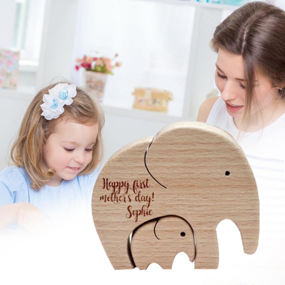 Display Mold Olifant Moeder En Kind Beste Moeder In De Wereld Gedrukt Hout Desktop Ornament Voor Kids