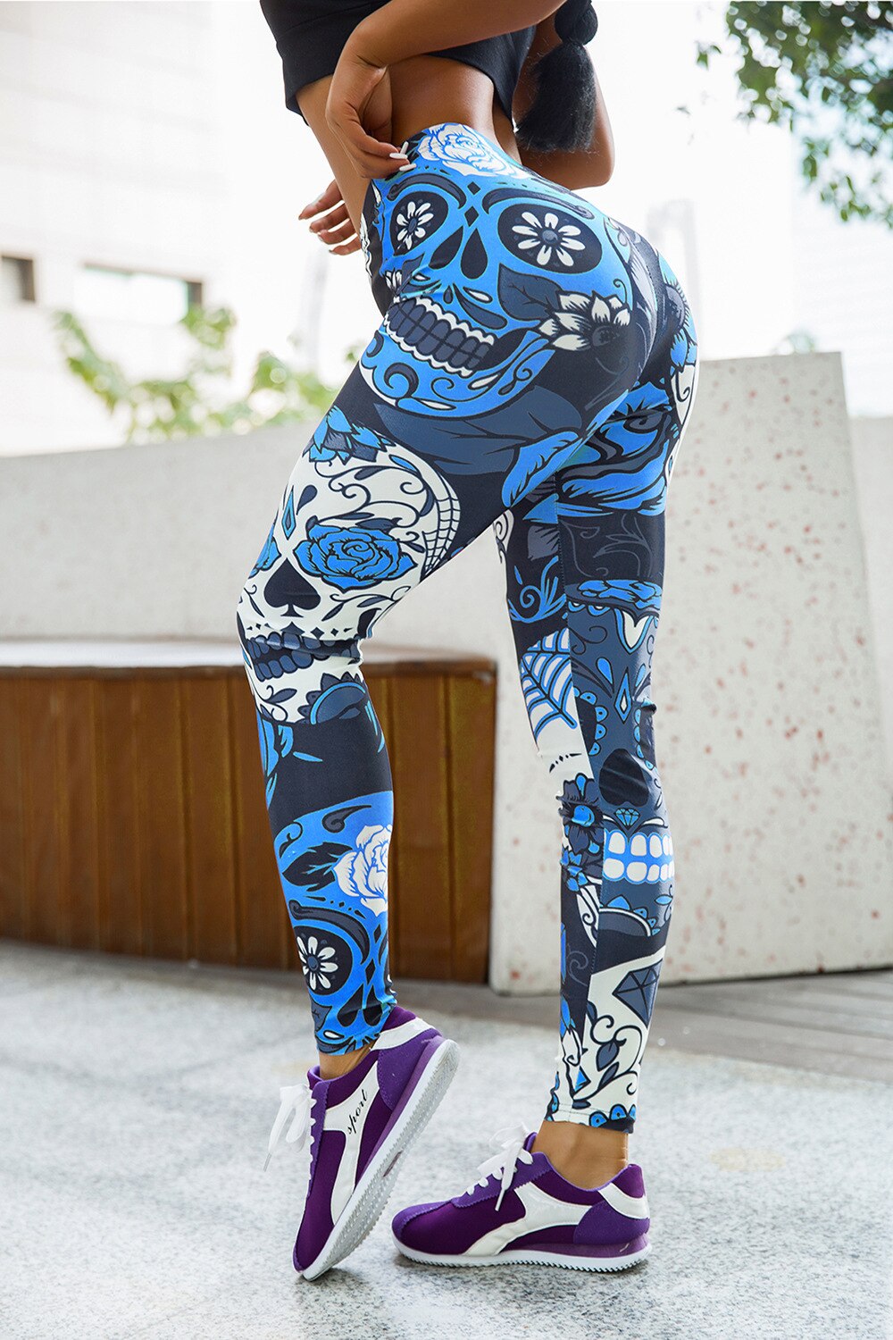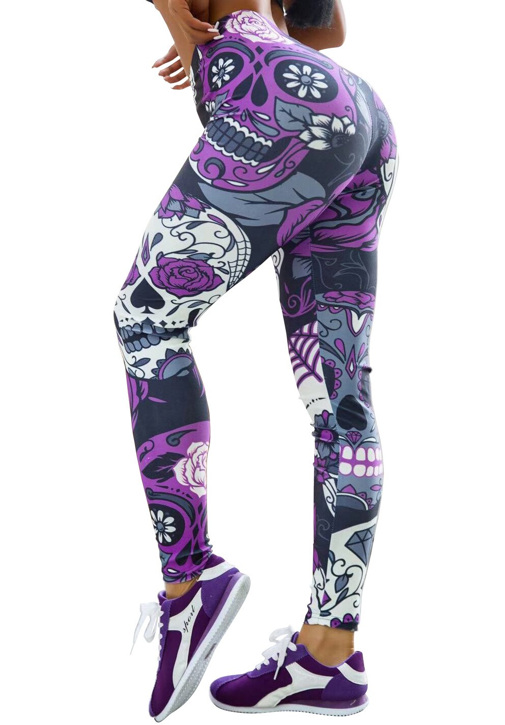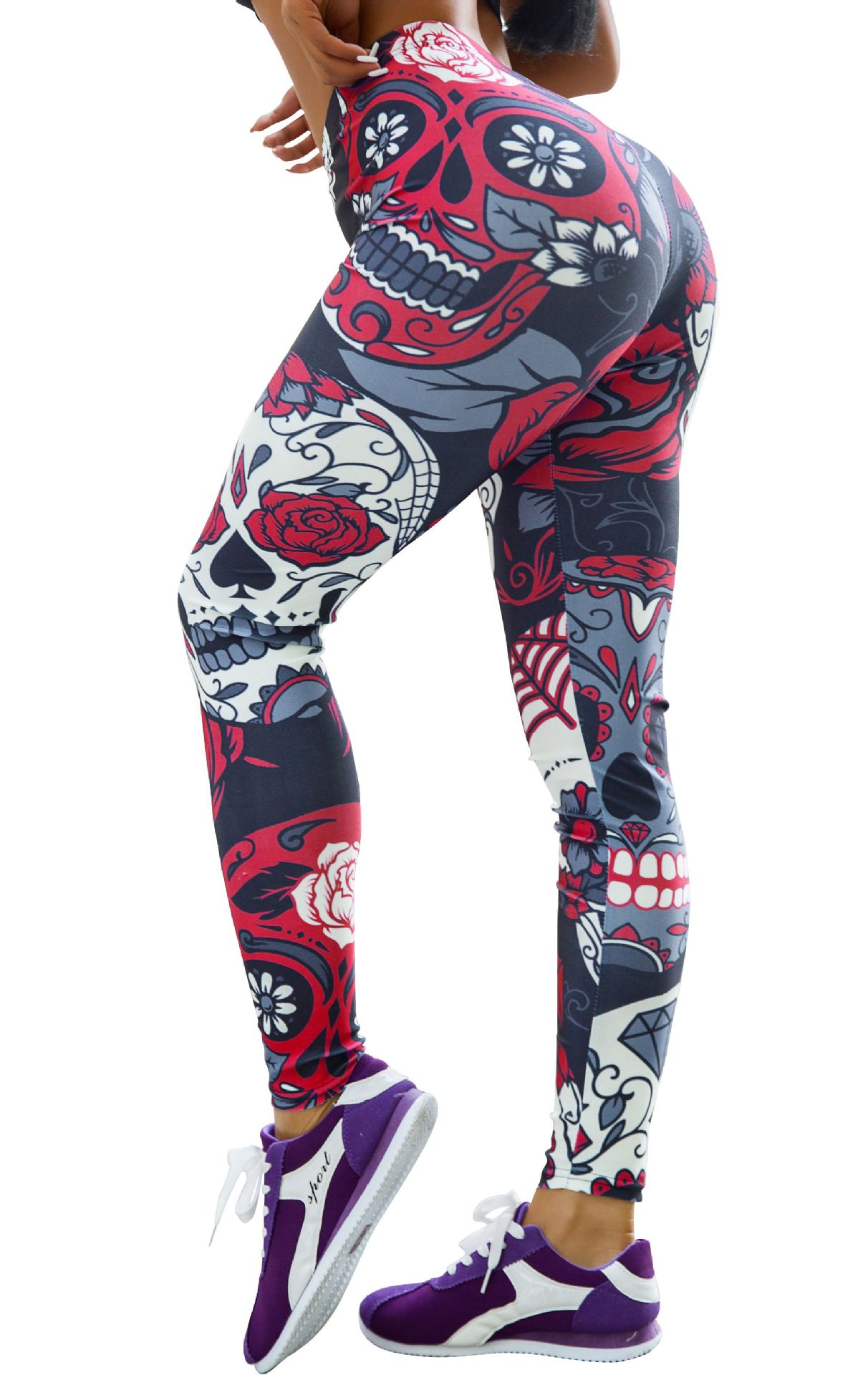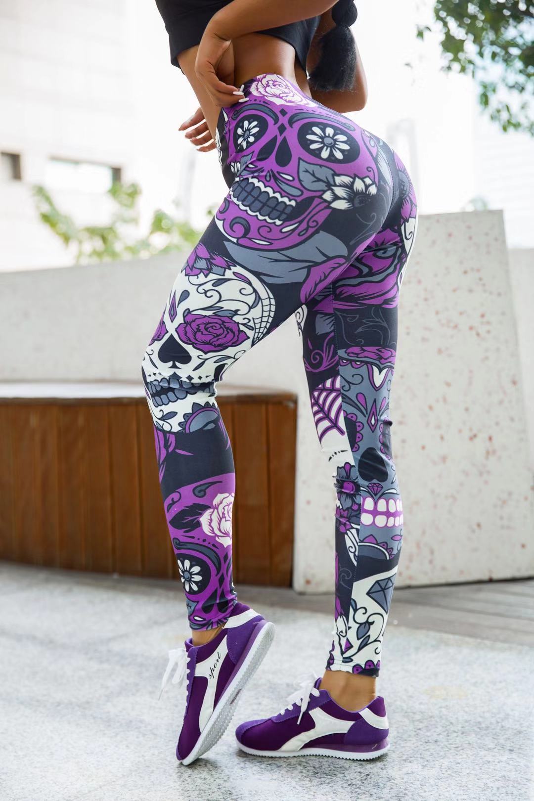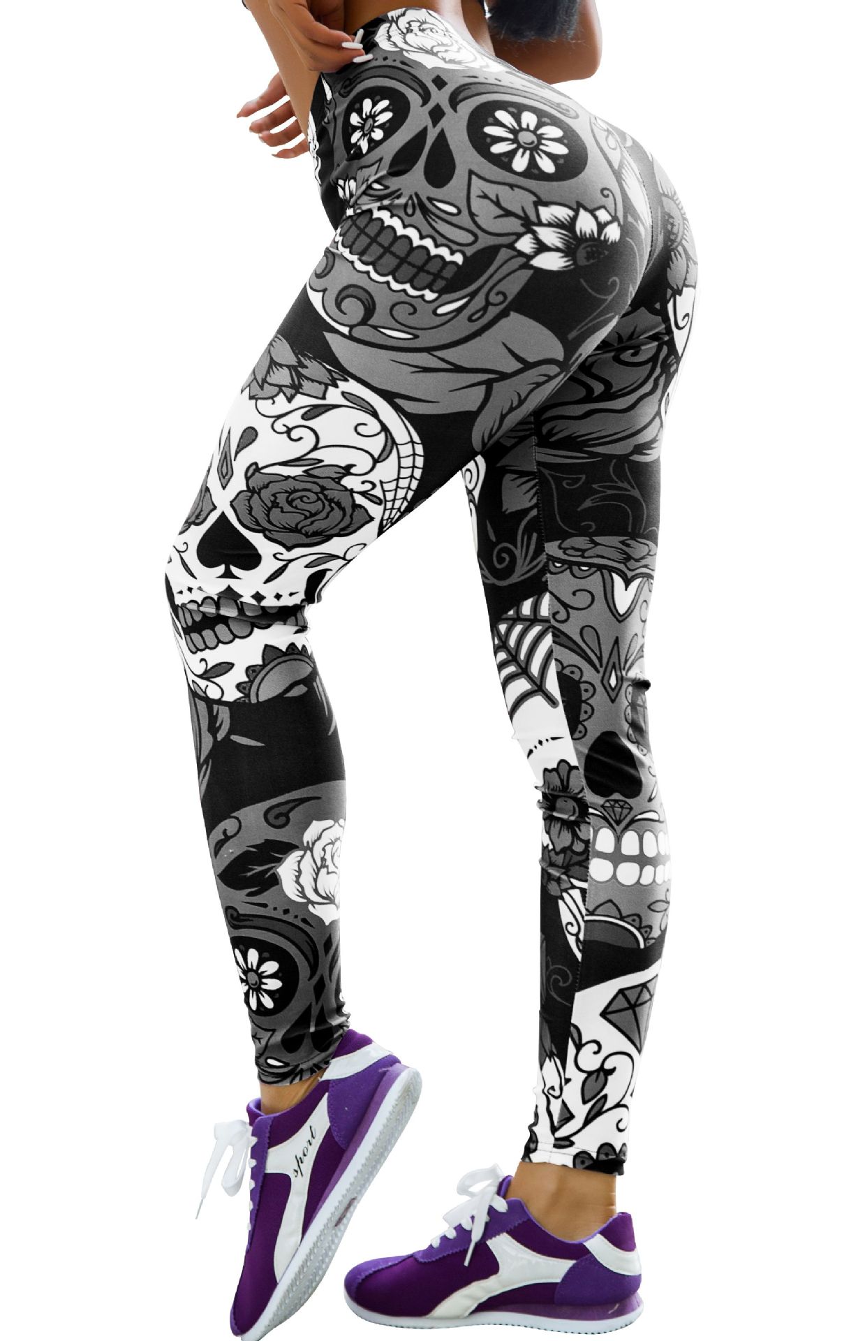 Jigerjoger Elastische Vrouwen Legging Schedel Gedrukt Spandex Oefening Strakke Broek Vrouwen Spoor Broek Gratis