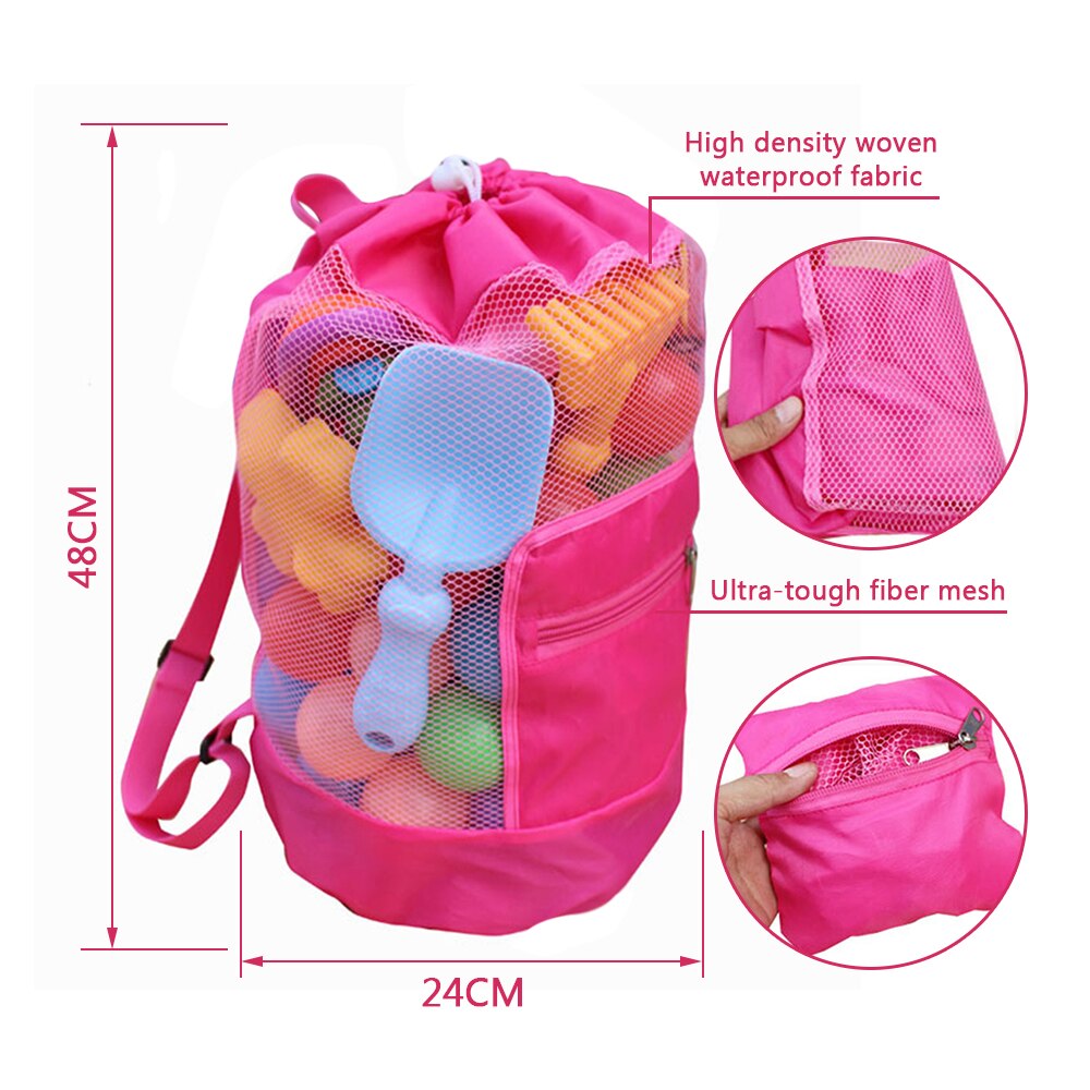 Large Mesh Bag with Sandaway Drawstring Mesh Tote Bag Durable for Outdoor Beach Front Pocket with Security Zipper B99