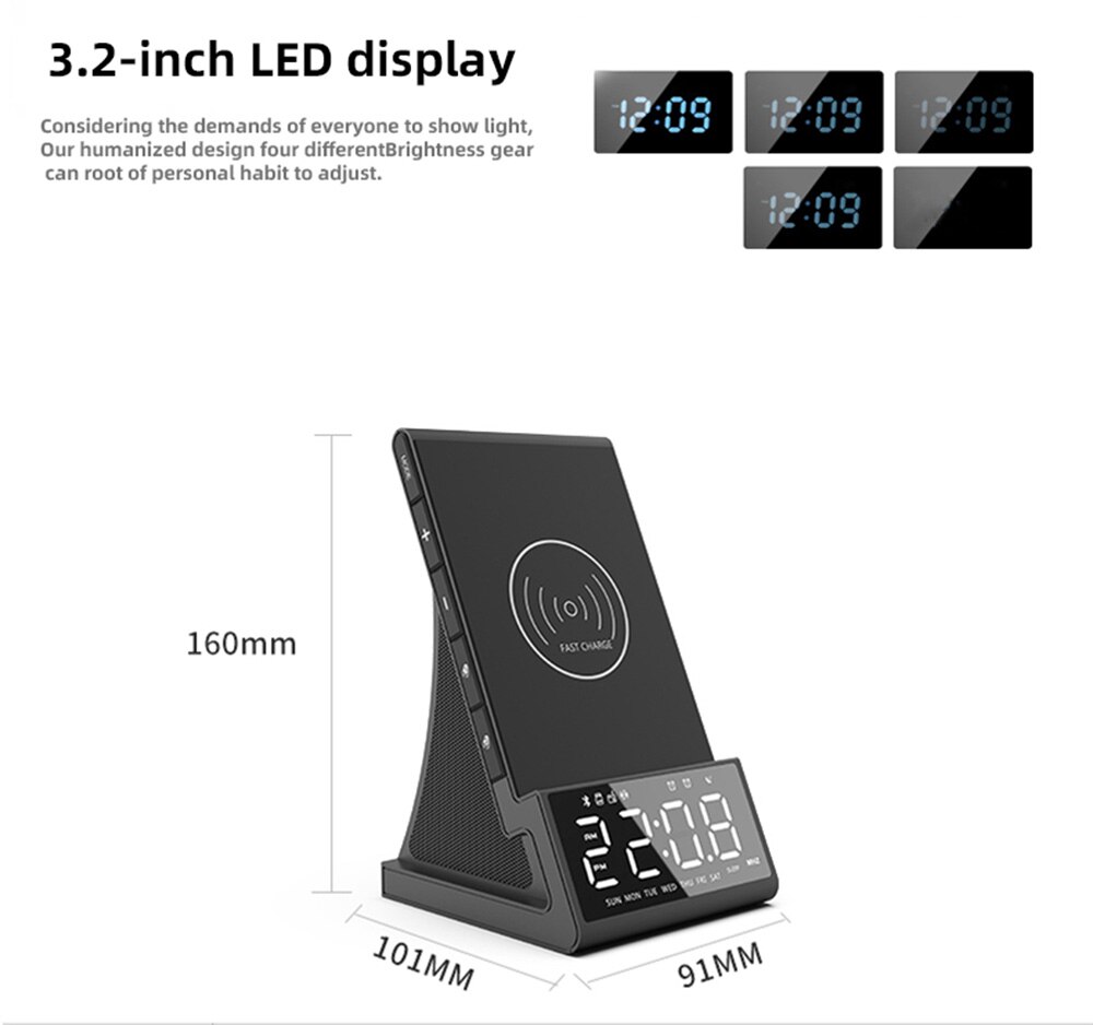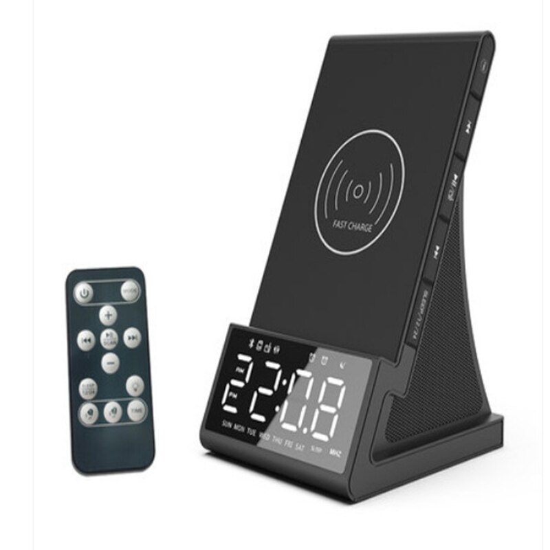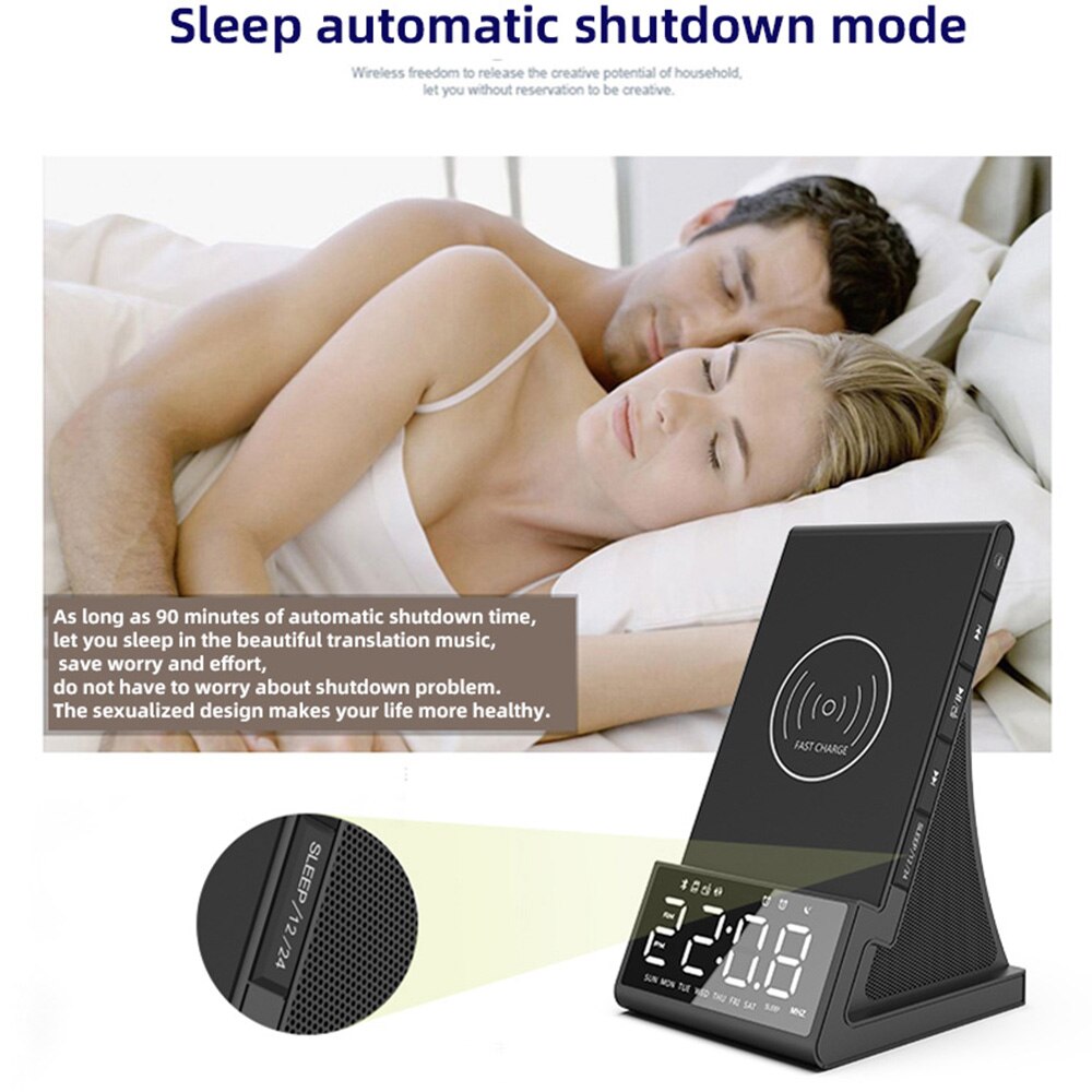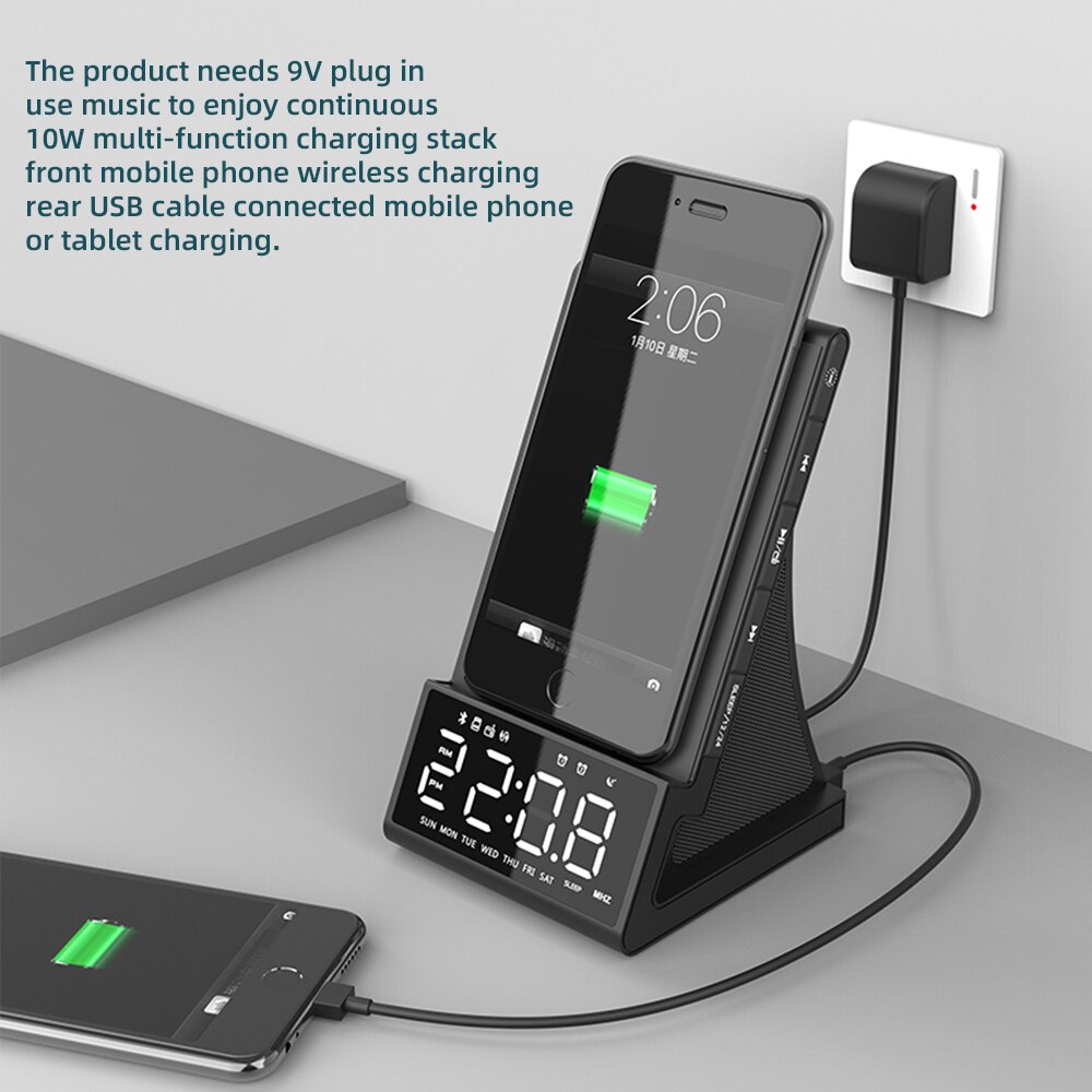 Led Smart Digitale Klok Draadloze Bluetooth Opladen Wekker Radio Dual Coil Snelle Lading Subwoofer Desktop Bluetooth Speaker