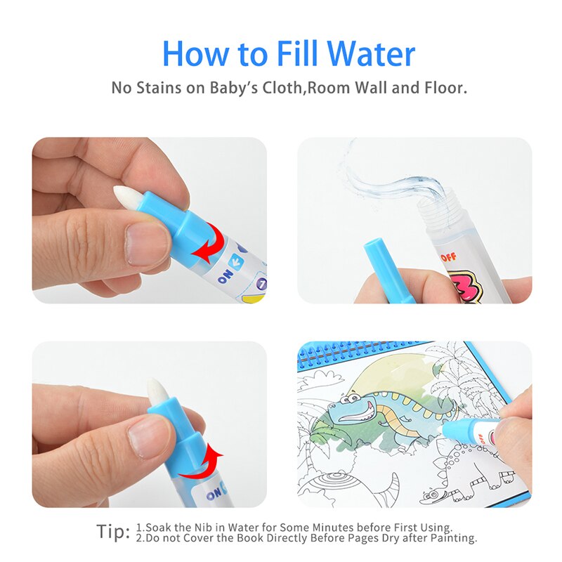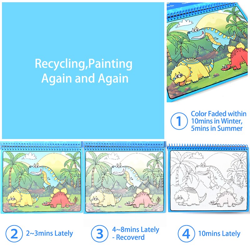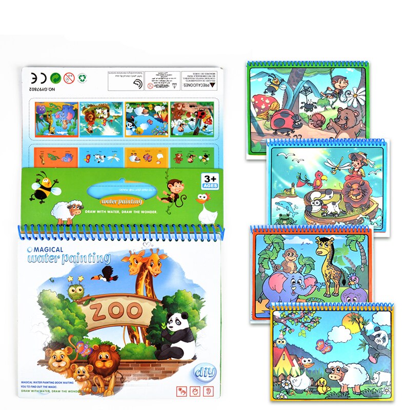 Magic Water Tekening Boek Zoo Animal Dinosaurus Kleurboek Graffiti Magic Pen Schilderen Tekentafel Voor Kinderen Educatief Speelgoed