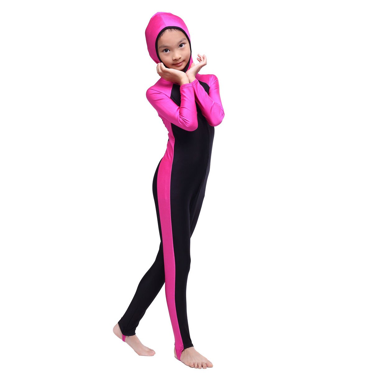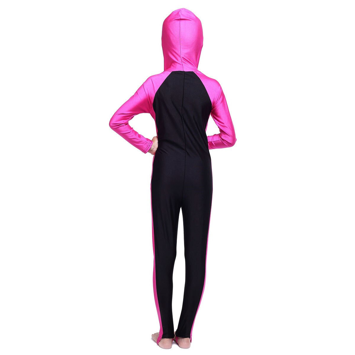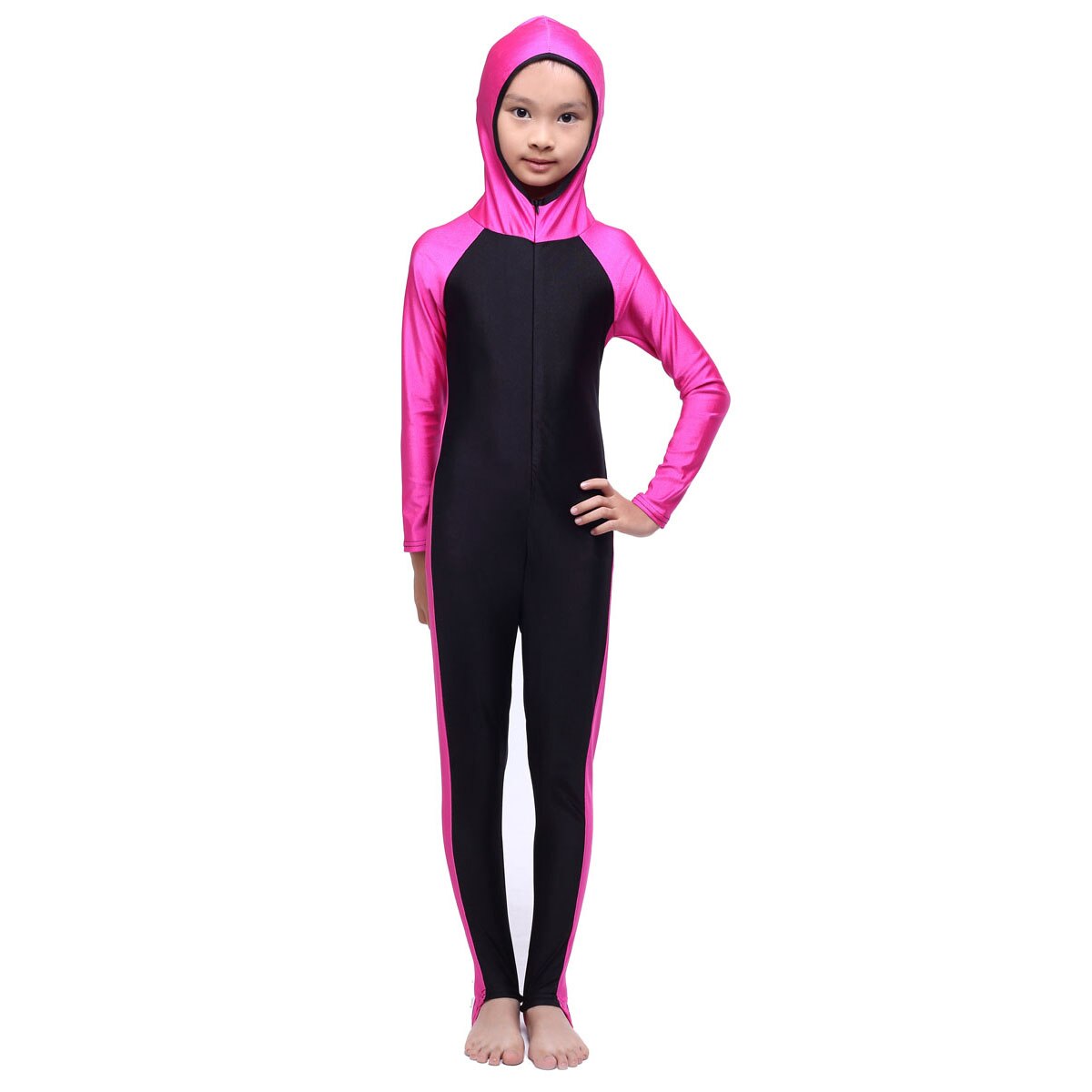 Msulim Meisjes Kinderen Islamitische Vier Seizoen Zwemmen Sets Nylon Patchwork Hooded Burkinis Lange Mouwen Broek Jumpsuit HW20E