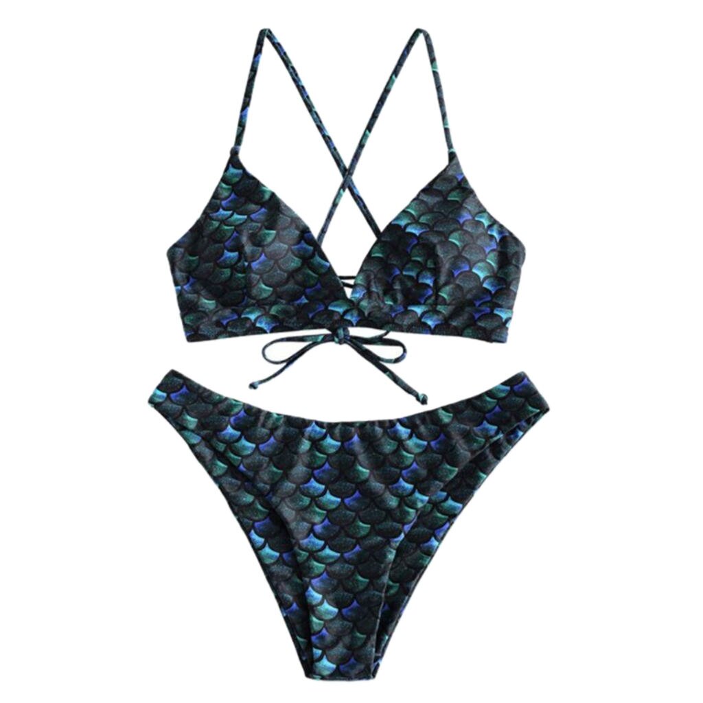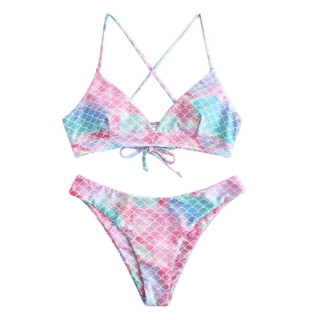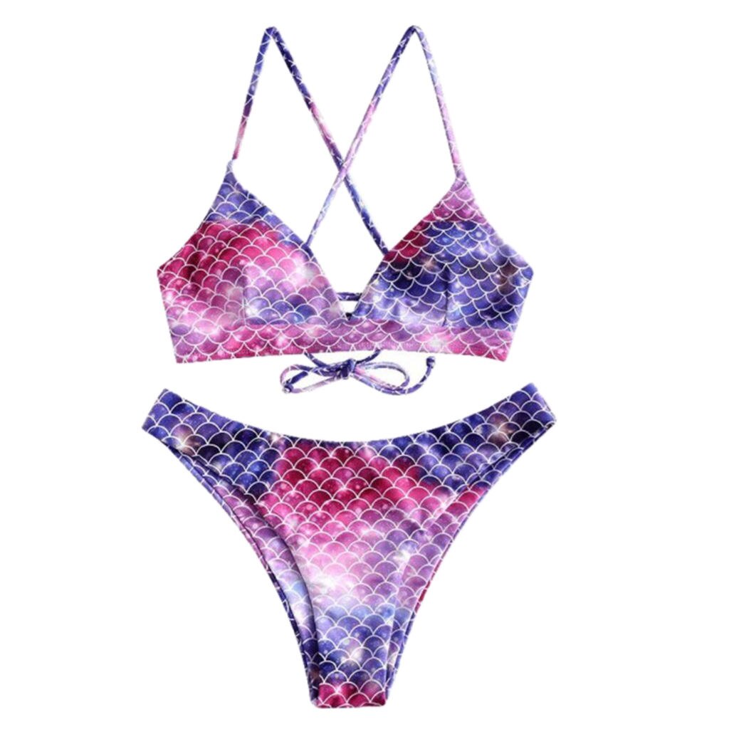 Womens Schaal Print Lace Up Kriskras Bralette Bikini Badpak