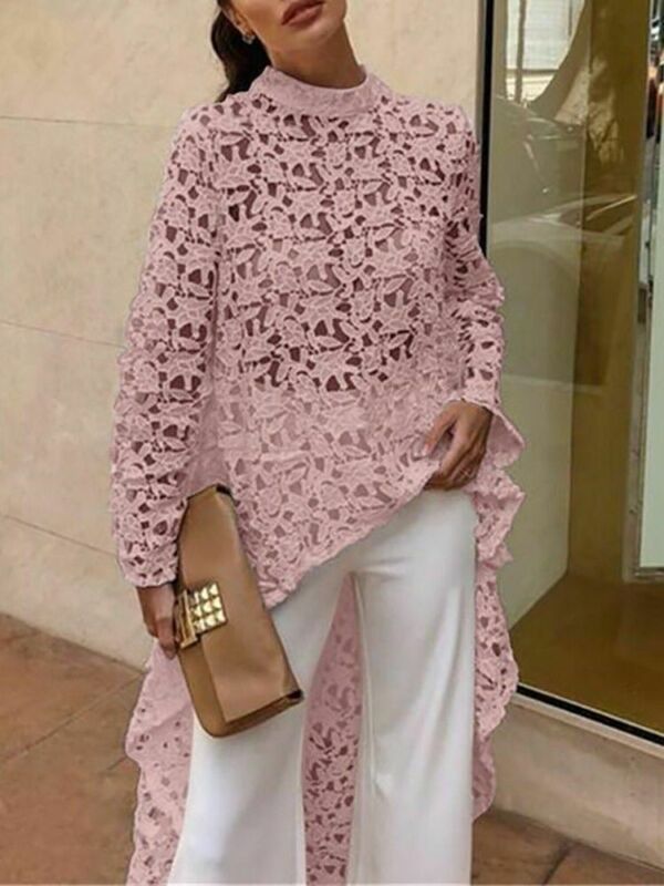 Zomer vrouwen Cover Up Solid Lace Strand Zwemmen Pak Bekini Sets Cover Up Pullover Met Lange Mouwen O-hals
